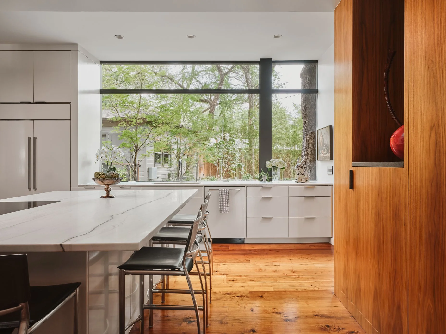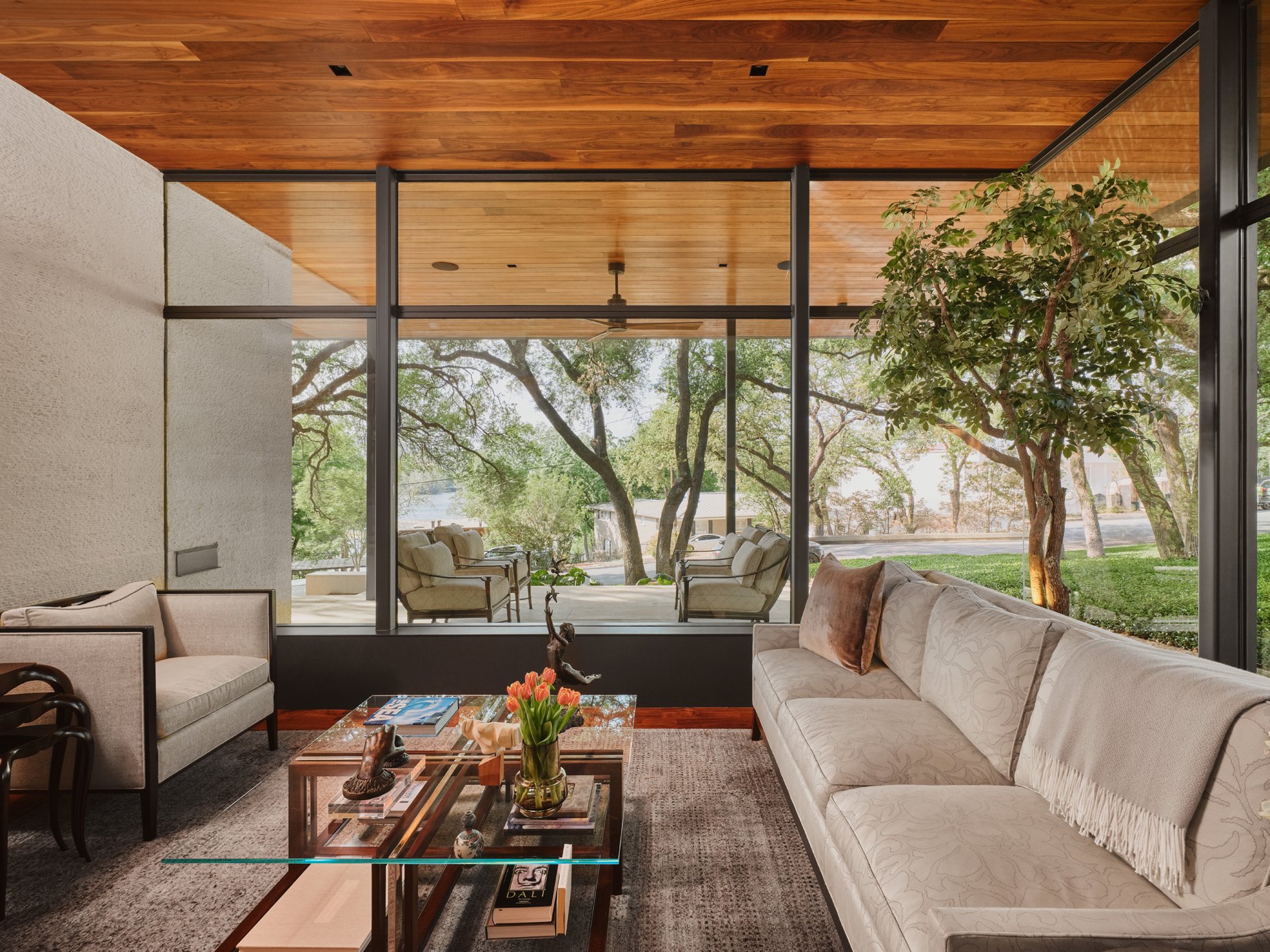 Completely redesigned by Hugh Randolph Architects and brought to life by Burnish & Plumb Construction, this Tarrytown residence on Austin's most celebrated street, Scenic Drive, sets a new standard for thoughtful design and exceptional craftsmanship. From the moment you arrive, there is an understated elegance to the home. Walnut wood is used throughout, adding richness and depth, while clean architectural lines and a highly curated finish create a sense of cohesion rarely achieved. Every element has been considered, every detail executed with precision, resulting in a home that feels both elevated and enduring.